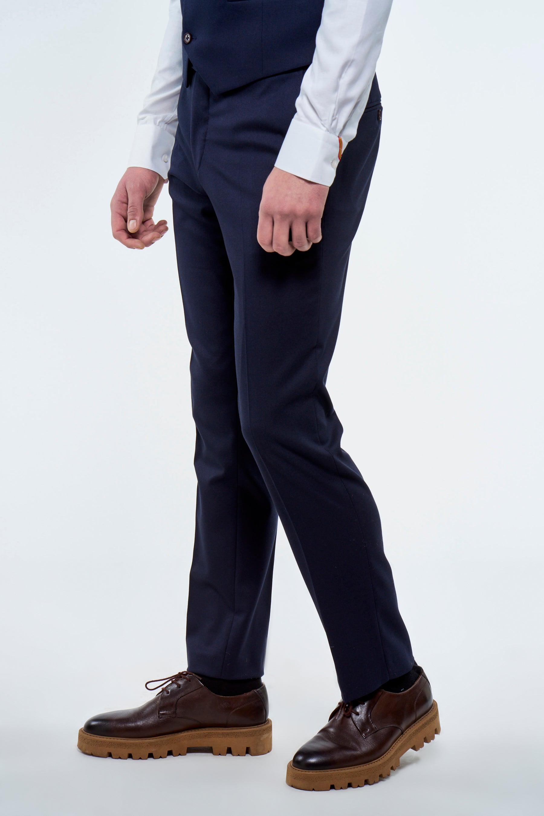Description: Avec ce pantalon de costume Le Fabuleux Marcel de Bruxelles vous arborez un look impeccable. Vous préférez rester décontracté ? Alors combinez ce pantalon de costume bleu avec un pull ou un T-shirt blanc et des sneakers pour un style décontracté chic.