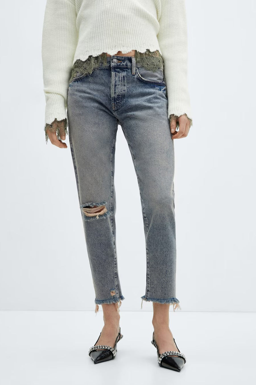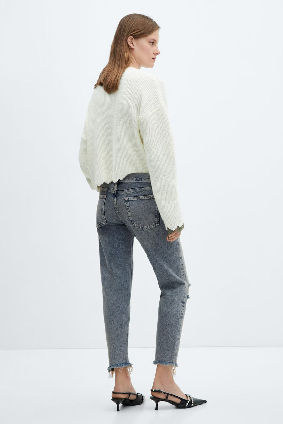 Description: Ce jean mom de MANGO est en tête de notre liste de souhaits pour cette saison ! Combiner est un jeu d'enfant avec ce jean. Portez votre jean mom de manière robuste avec une veste bomber ou de manière un peu plus formelle avec un chemisier. Ou optez pour un simple t-shirt pour un look décontracté. Vous pouvez tout faire avec !