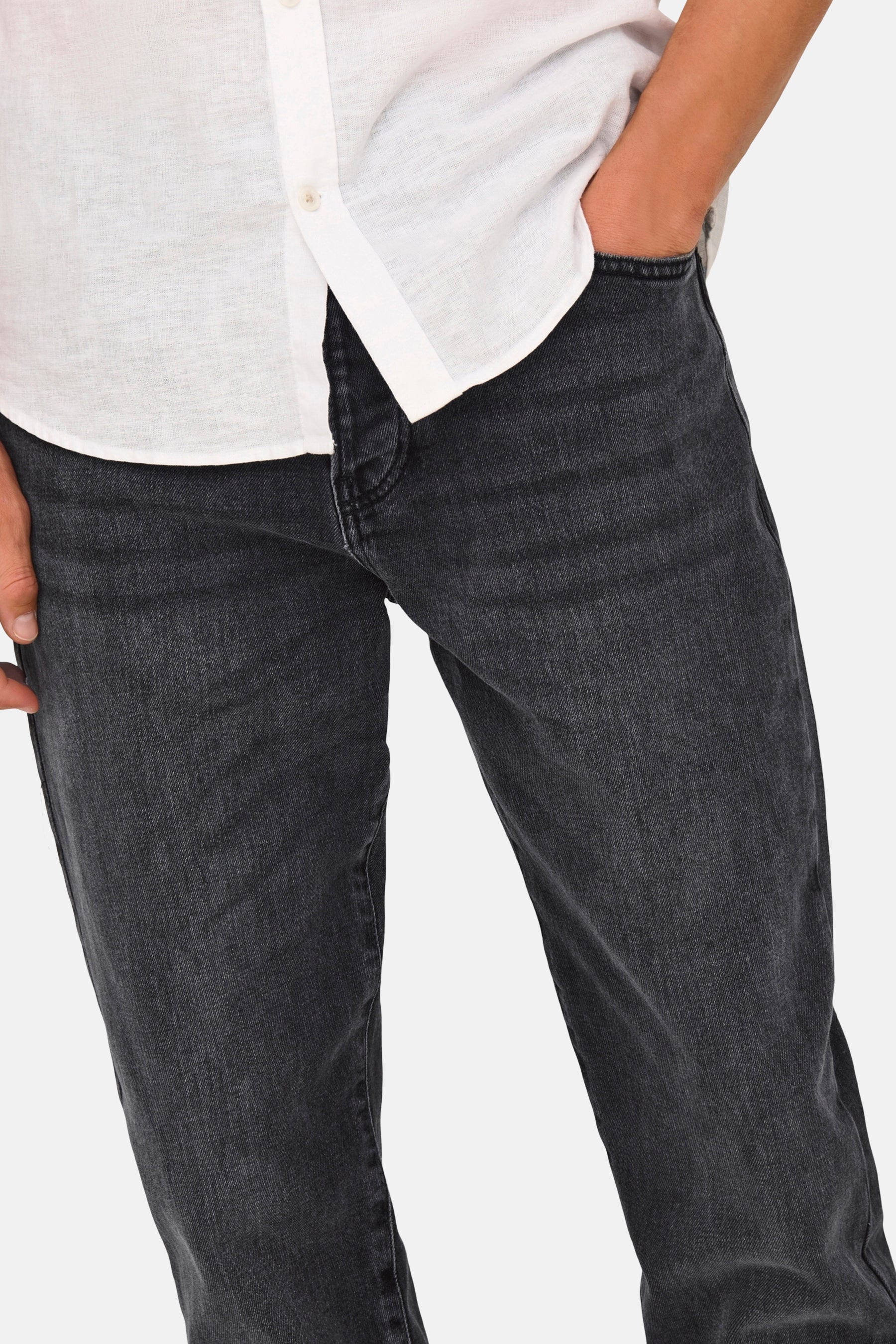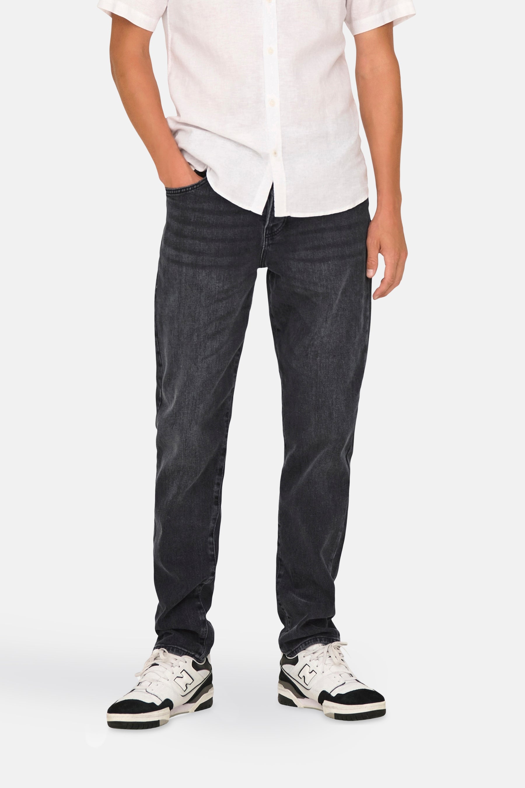 Description: Pour les hommes parmi nous qui n'aiment pas les jeans trop serrés, le 22027850 de ONLY & SONS® est un bon choix. Ce jean à coupe fuselée a une coupe qui se rétrécit des hanches vers le bas et s'adapte comme un modèle slim fit au niveau des chevilles. Cela garantit un confort de port merveilleux tout en vous donnant un look mince.