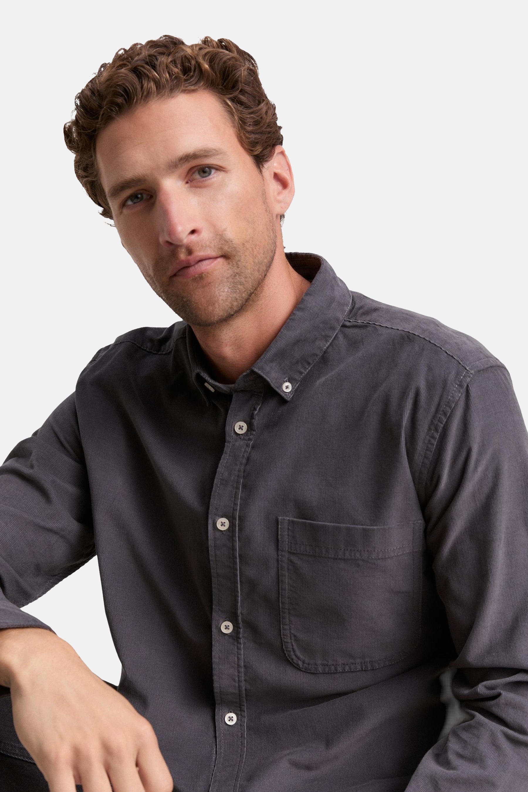 Chemise Regular Fit en velours côtelé avec poche poitrine